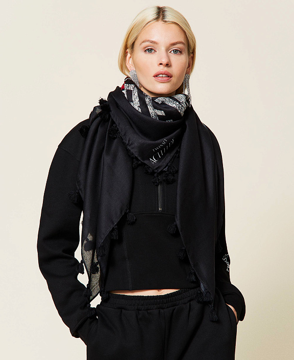 Куфия с набивным рисунком Actitude, обработанными краями и кисточками по краю.