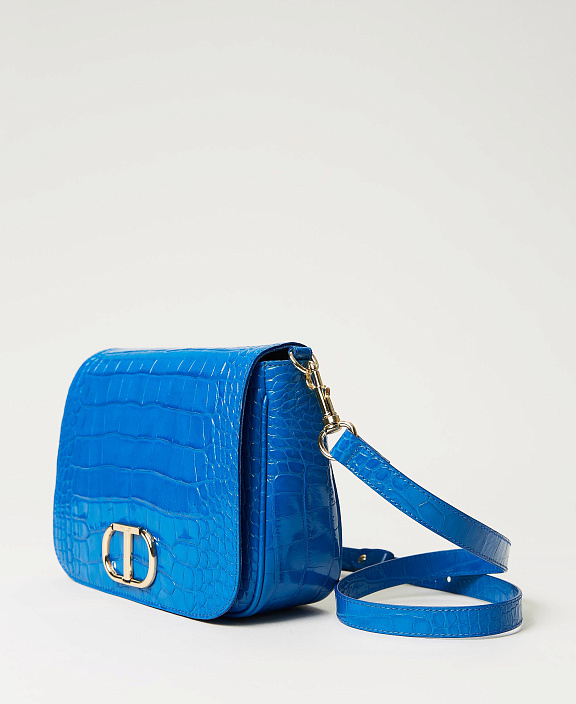Сумка через плечо из высококачественной итальянской телячьей лицевой кожи с тиснением под крокодила, клапаном и новым логотипом.