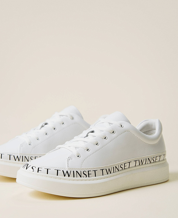 Белые кожаные кеды c логотипами TWINSET по краю подошвы.