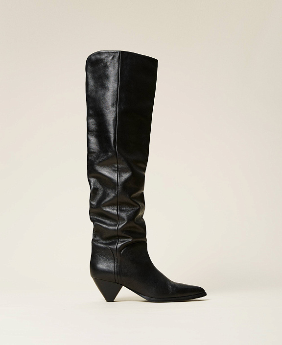 Сапоги-ботфорты из наппы с конусообразным каблуком