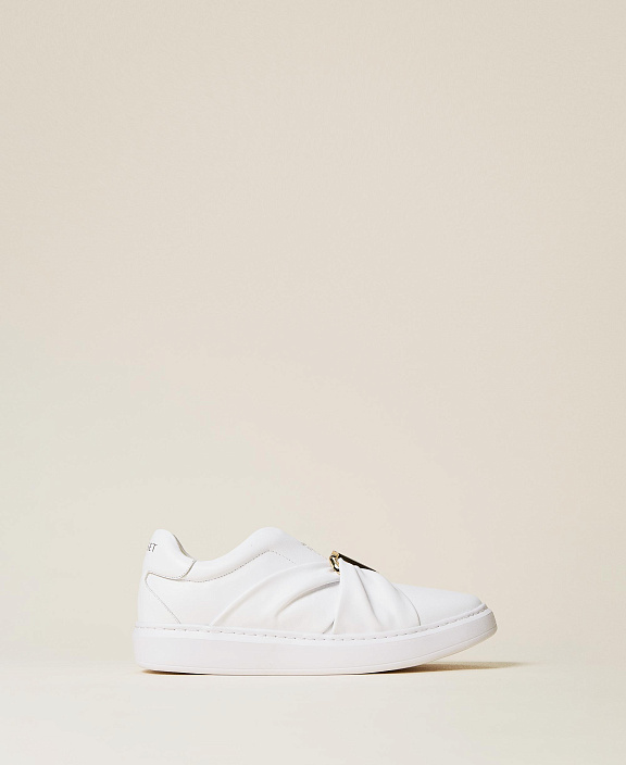 Лоферы из натуральной кожи. На союзке драпированные ленты из мягкой наппы, соединенные пряжкой в форме овального логотипа.