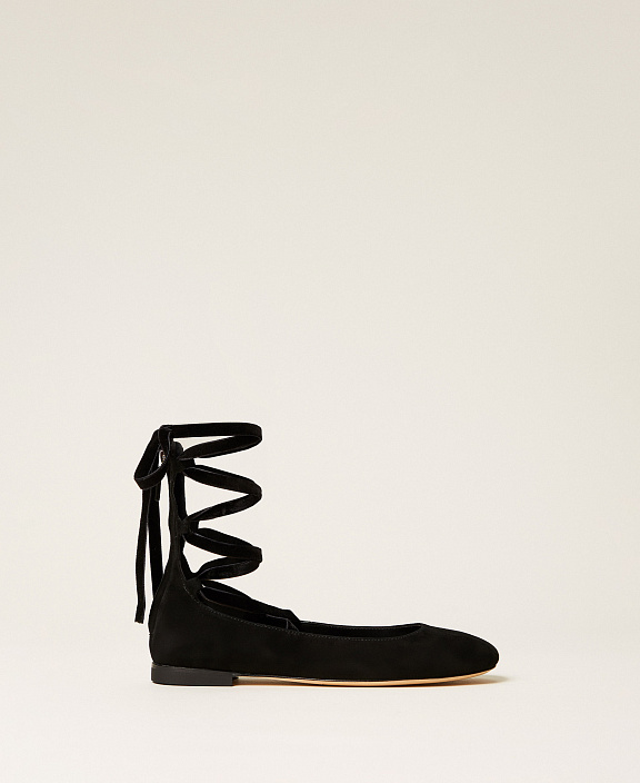 Балетки из натуральной замши со съемными лентами, завязывающимися на щиколотке, и кожаной подошве.