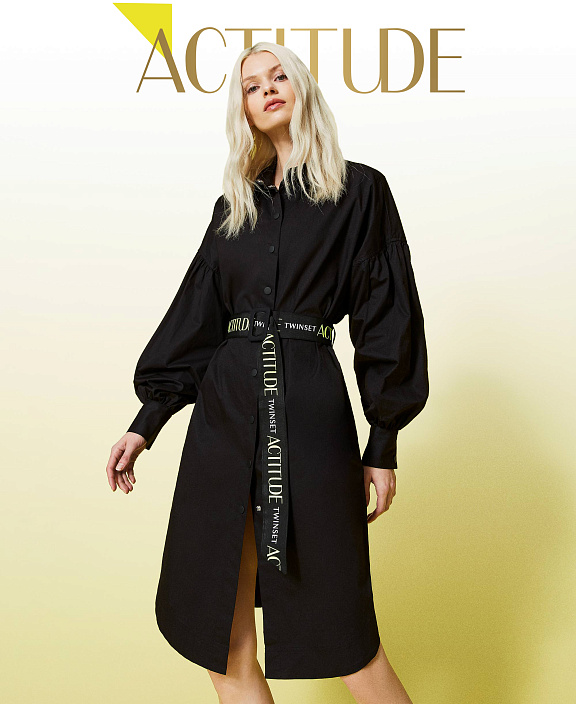 Короткое платье-рубашка из коллекции Actitude из технического поплина с двусторонним поясом с принтом логотипа.