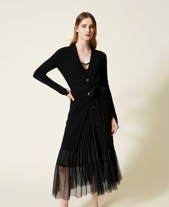 Универсальный кардиган для самых разнообразных образов. Он выполнен с застежкой на пуговицах с поясом. Благодаря мягкой итальянской ткани, он станет ключевым элементом вашего повседневного гардероба. Носите с платьями, юбками или джинсами.