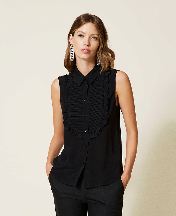 Рубашка без рукавов с эффектом манишки спереди и отложным воротником прямого силуэта.