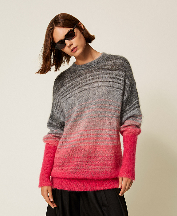 Джемпер свободного силуэта от художника MYFO (МАЙФО) для коллекции Actitude из шерсти и мохера с эффектом деграде, с круглой горловиной и длинными рукавами.