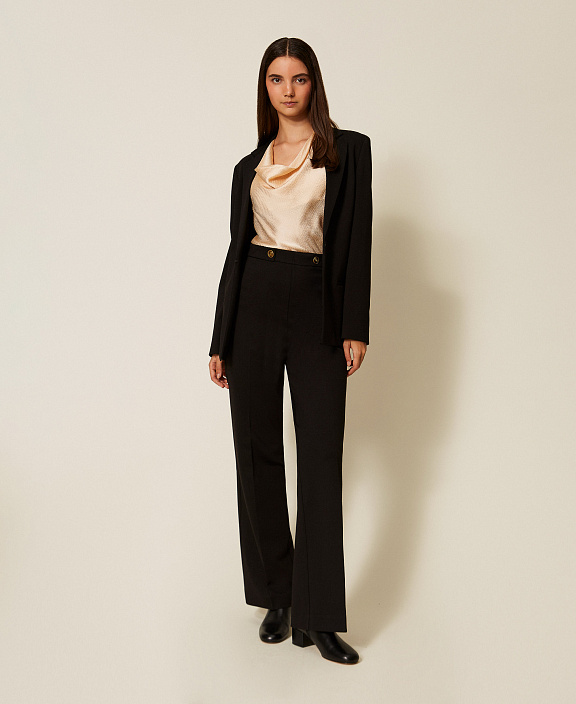 Эти стильные брюки-клёш созданы, чтобы подчеркнуть изящество фигуры и подарить комфорт в движении. Мягкий трикотаж на основе вискозы с добавлением полиамида и эластана обеспечивает отличную посадку и сохраняет форму. Широкие штанины визуально вытягивают силуэт, а современный крой делает модель универсальной для офиса и повседневных выходов. Сочетай их с блузами, свитерами или топами для создания безупречных образов в любое время дня.