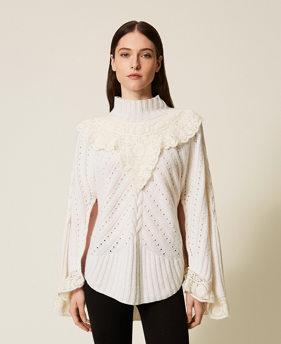 Свитер из смесовой шерсти с отделкой кроше