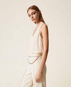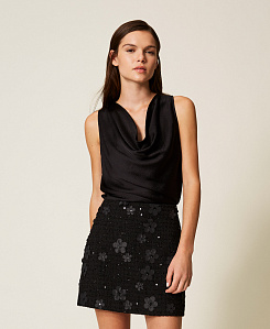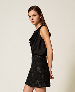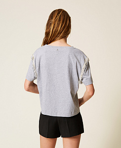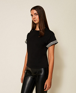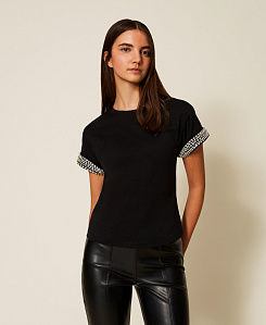 Не откажите себе в универсальной и очаровательной черной футболке, интерпретированной в стиле Twinset с помощью принтов, вышивки и романтических вставок. Если же вы желаете иметь простую, но изысканную вещь, выберите белую футболку с бахромой, которую можно носить с шортами и обувью на высоком каблуке.