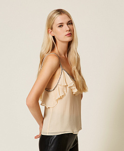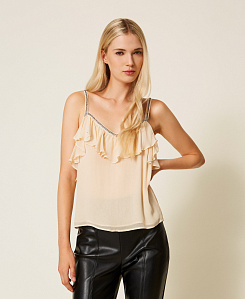 Топы в духе последних модных тенденций предлагают калейдоскоп стильных сочетаний. Модели из муслина и джерси идеально подходят на каждый день, а с кружевными вставками и тонкими бретельками - для особых мероприятий. Обратите внимание и на укороченные топы, которые можно элегантно и непринужденно надевать под блейзер.