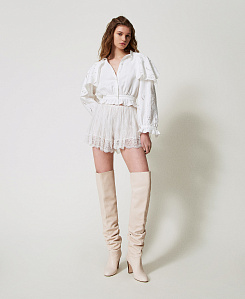 Шорты с высокой талией из хлопкового габардина отличаются женственностью и универсальностью и идеально подходят для повседневной носки, в то время как для важных событий вы можете выбрать элегантные шорты из кружева макраме на муслиновой подкладке, которые можно дополнить топом и обувью на высоком каблуке.