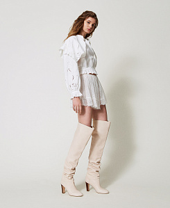 Летние шорты изготовлены из легких материалов и прекрасно подходят как для города, так и для отпуска: модель из поплина с вышивкой гладью и заклепками отличается характером и повседневным стилем, а мини-шорты из льна с люрексом и вышивкой идеально подходят для выхода.